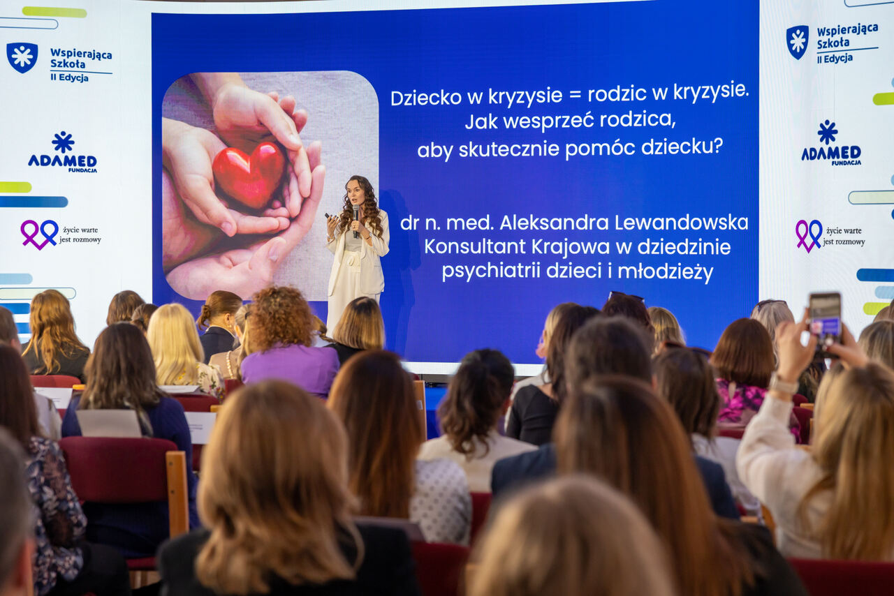 – W kryzysie psychicznym dzieci i młodzieży wsparcia potrzebują także dorośli – nauczyciele, rodzice i opiekunowie. Dlatego wyposażamy ich w wiedzę, pokazujemy procedury postępowania i konkretne narzędzia, czyli wskazówki, które pomagają zauważyć niepokojące sygnały i właściwie reagować. To działa i wiemy to bezpośrednio od dyrektorów szkół – mówi Katarzyna Dubno, członek zarządu Fundacji Adamed.